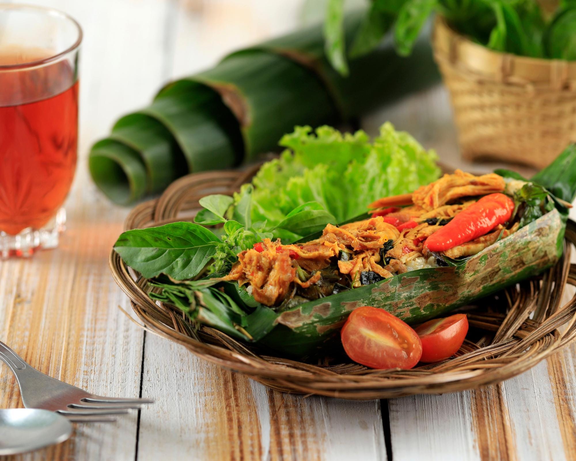 Fish, chicken, pasta, kemangi, salads, lemonade/ice-cold water