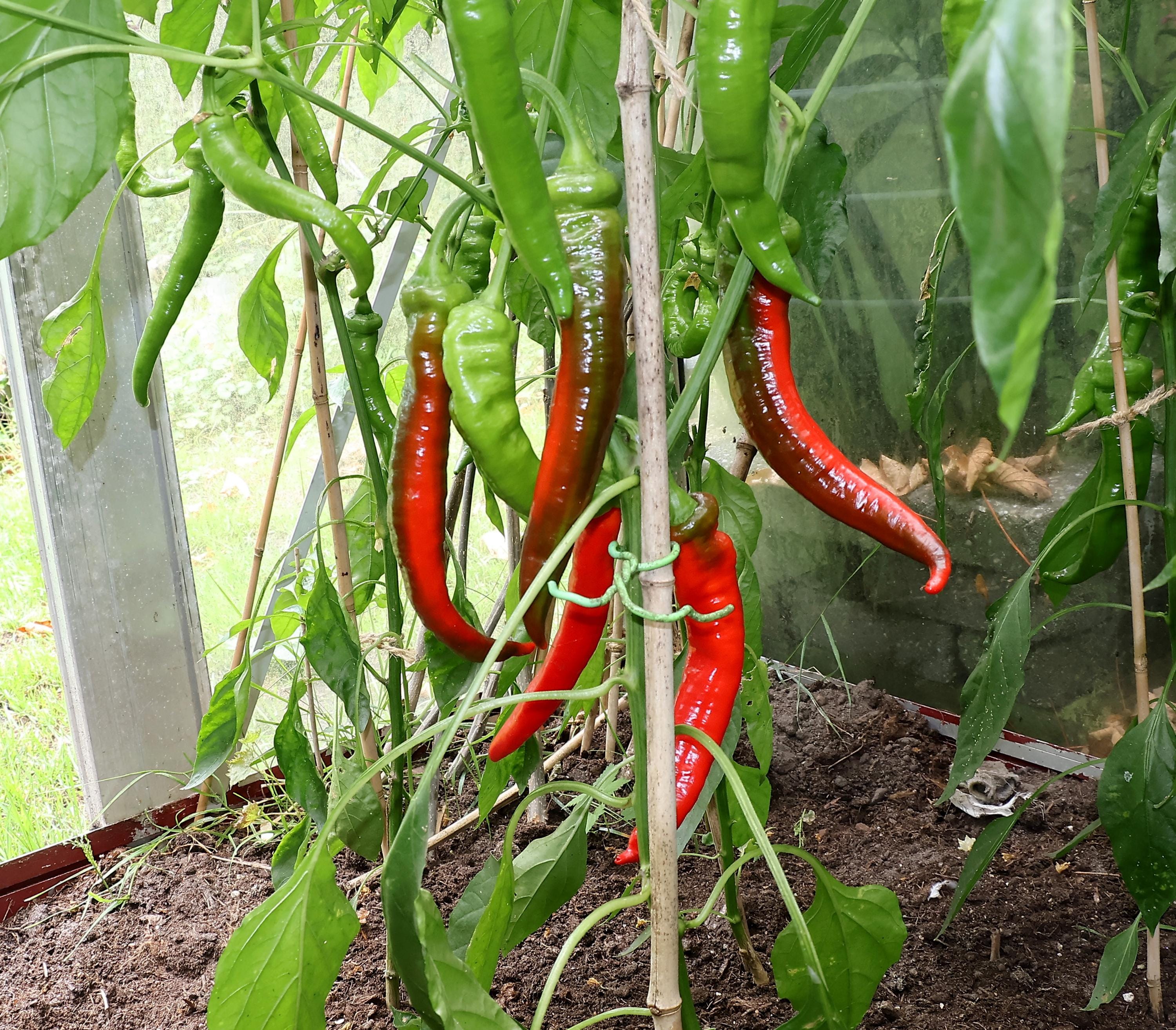 The Jimmy Nardello is ready to harvest when the fruits turn a deep, glossy red.