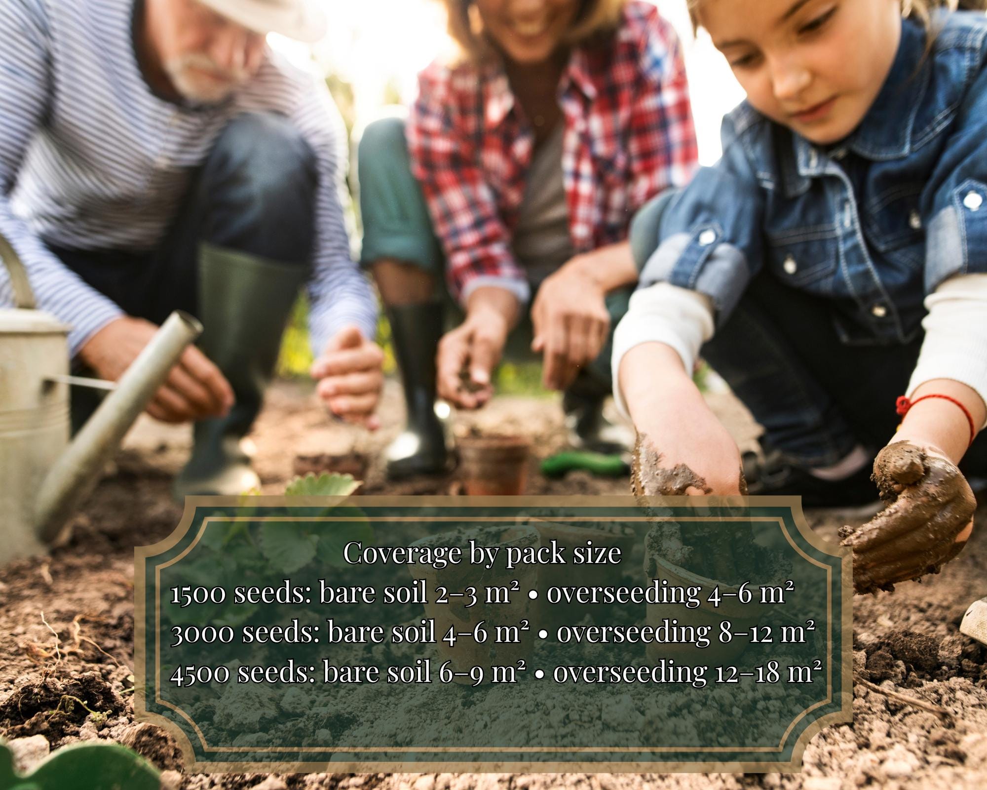 • Coverage: 2–3 m² (bare soil) | 4–6 m² (overseeding)