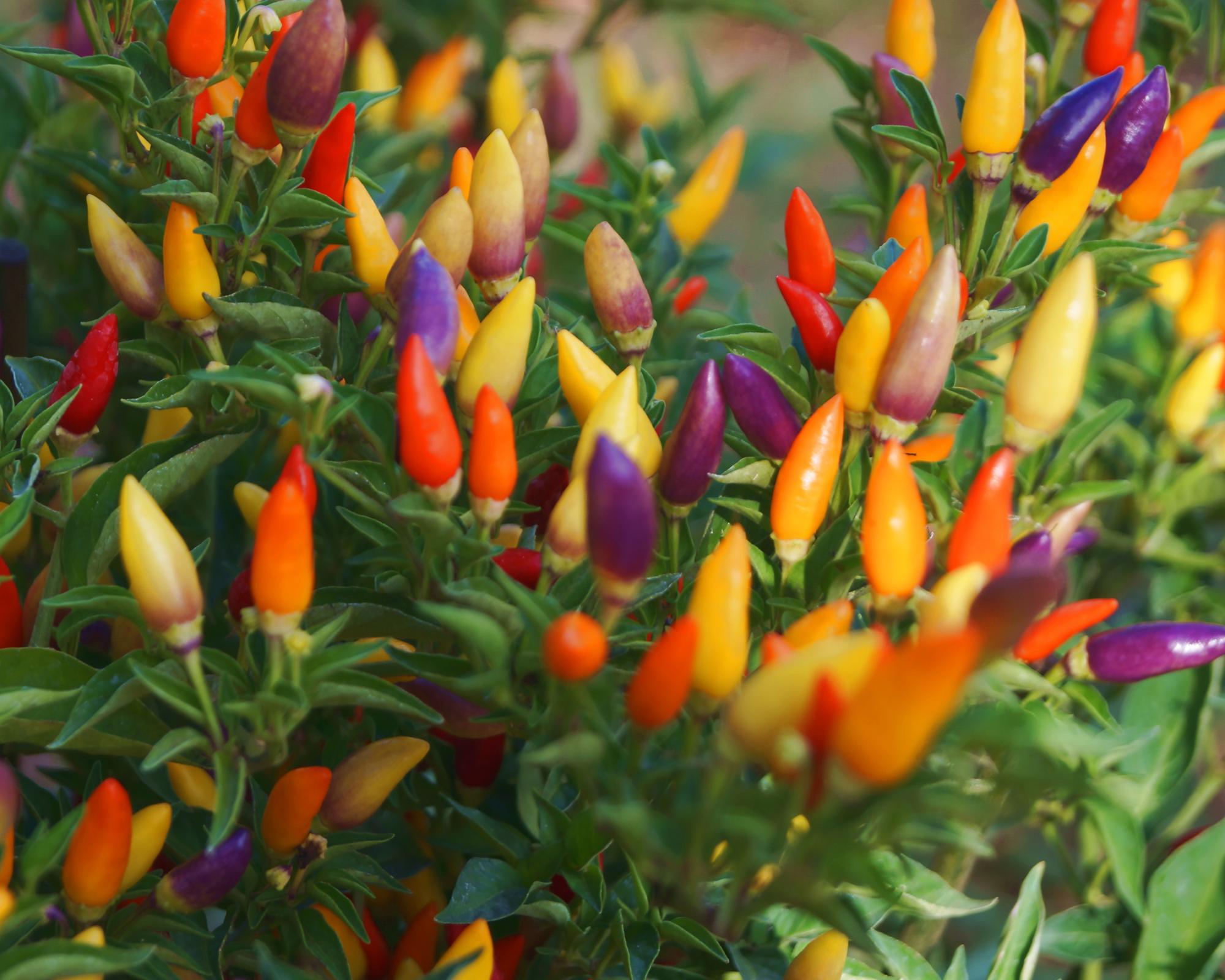 The perfect container pepper for pickling — and a total eye-catcher. Sweet Pickle is a compact, bushy pepper that loads up with clusters of thick-walled, sweet mini peppers. They ripen through multiple colors, making the plant look like “little lights” — great for balconies, pots, patios, and edible landscaping.