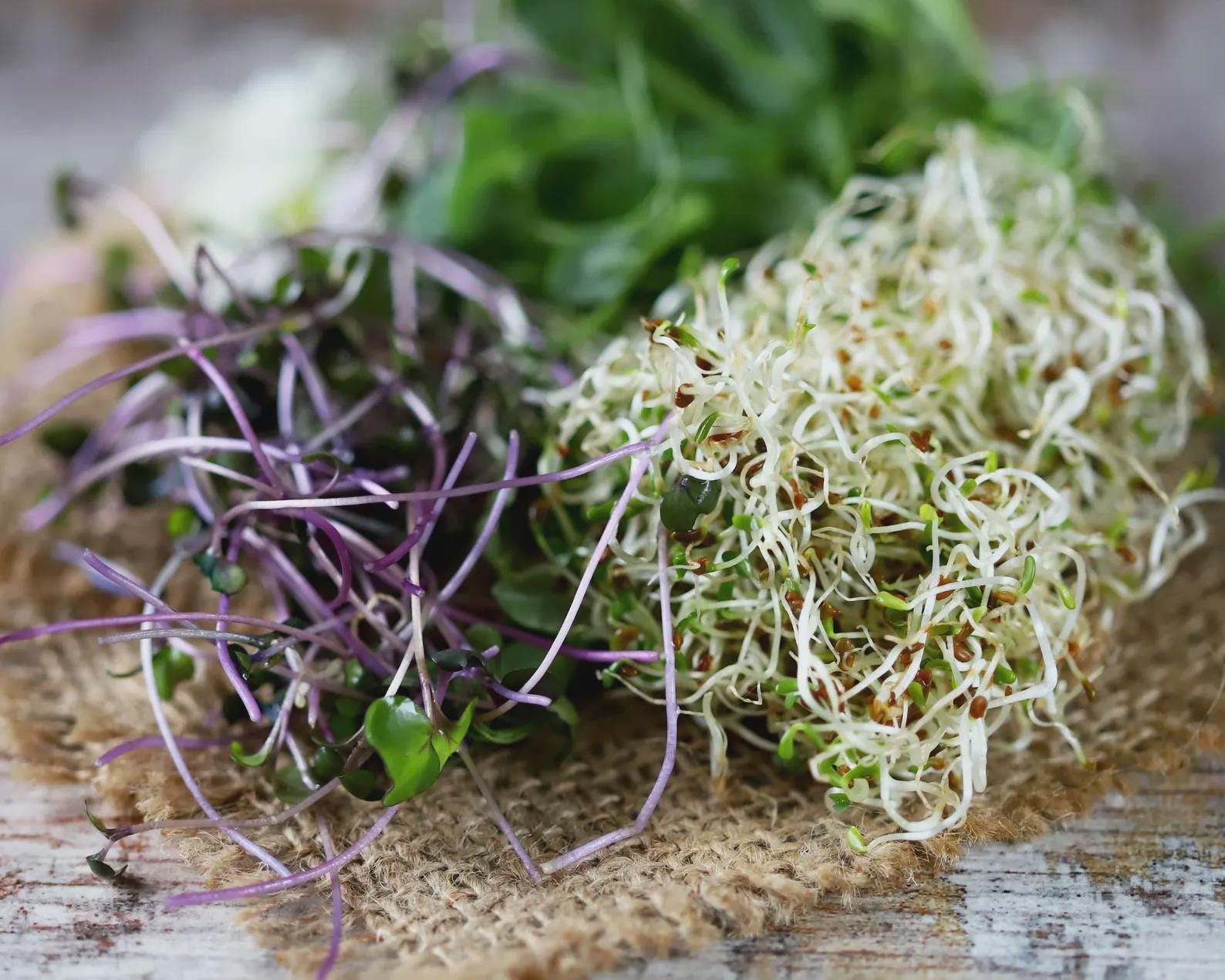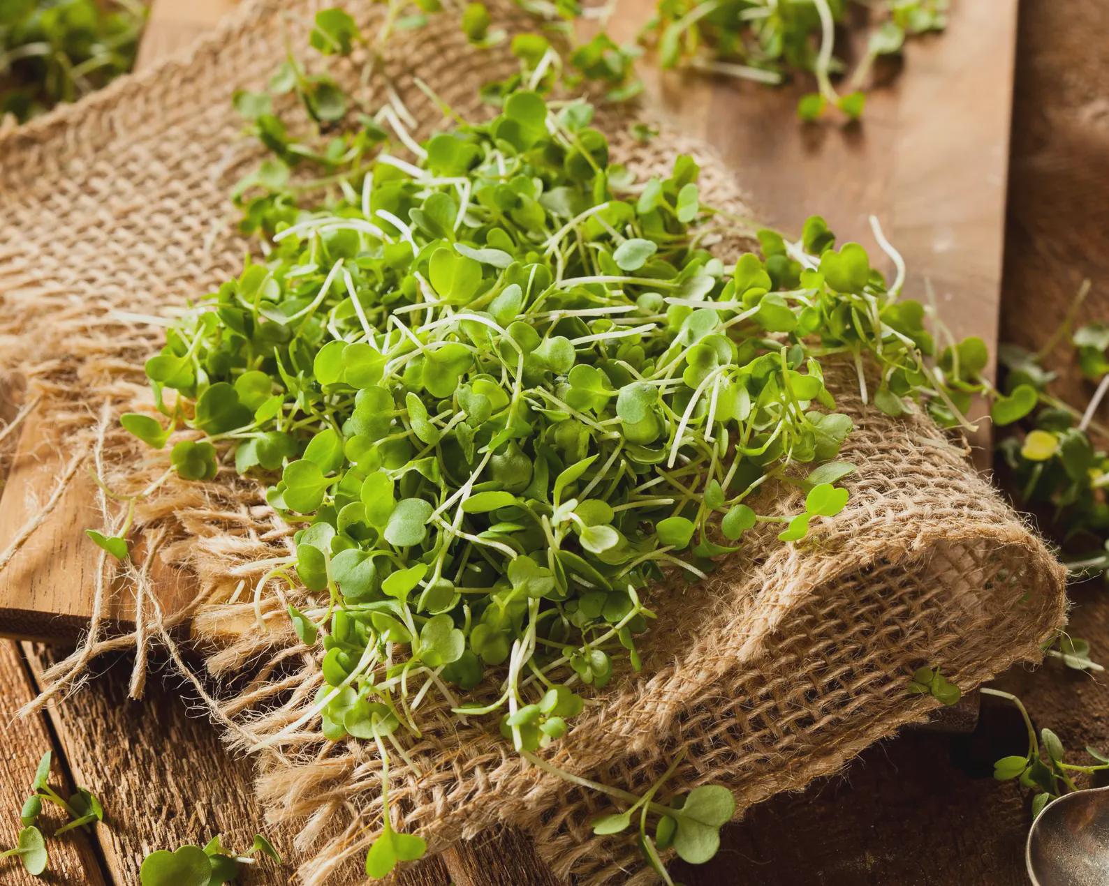Fresh green microgreens + a classic herb if you grow it on.
