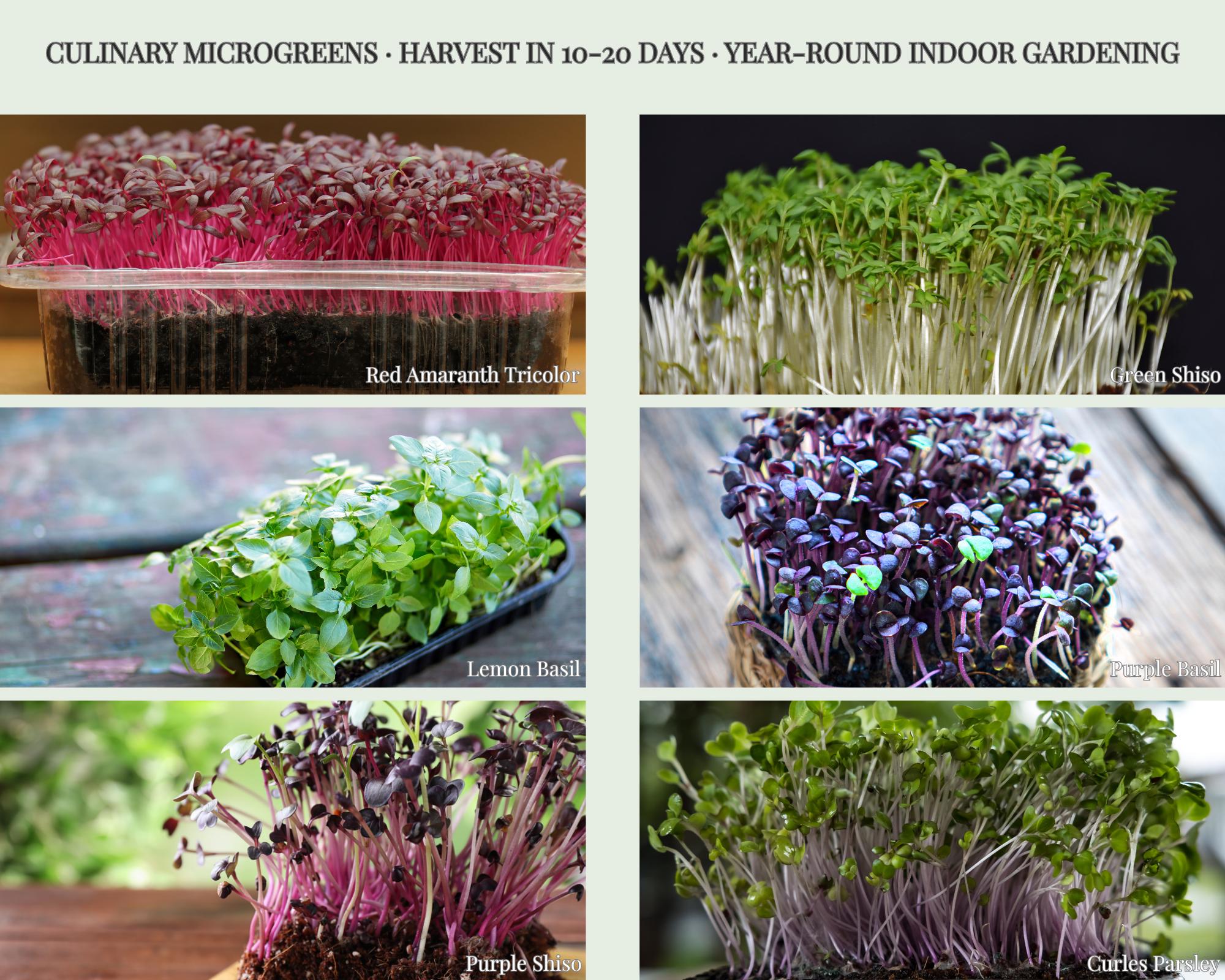 A chef-grade microgreens bundle for color, aroma, and premium plating — and you can grow it indoors year-round on a tray with soil or a grow mat. Perfect for salads, bowls, sandwiches, and as a finishing touch on warm dishes.
